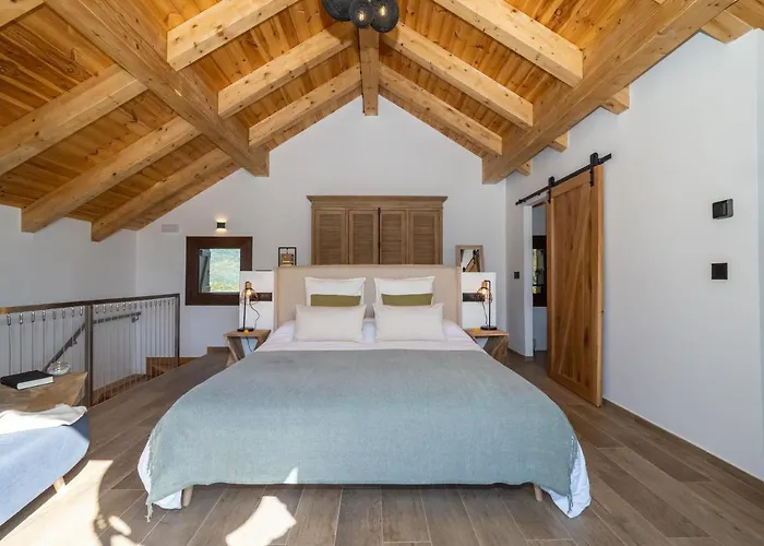 With an adjoining terrace and a balcony, the 2-bathroom villa offers guests comforts like climate control, as well as media elements, like a TV set. Along with a sofa, the interior features a stone fireplace. Bathroom amenities comprise a roll-in shower, a separate toilet, and a bath, as well as hairdryers and dressing gowns.